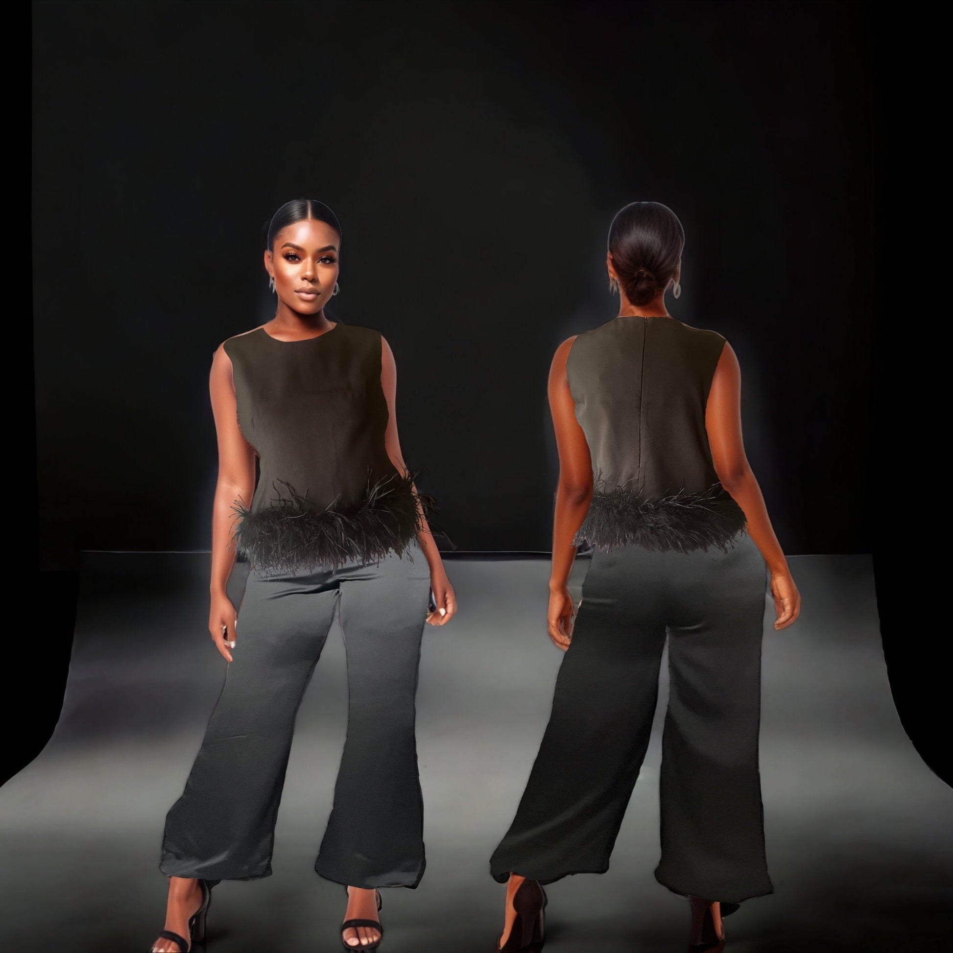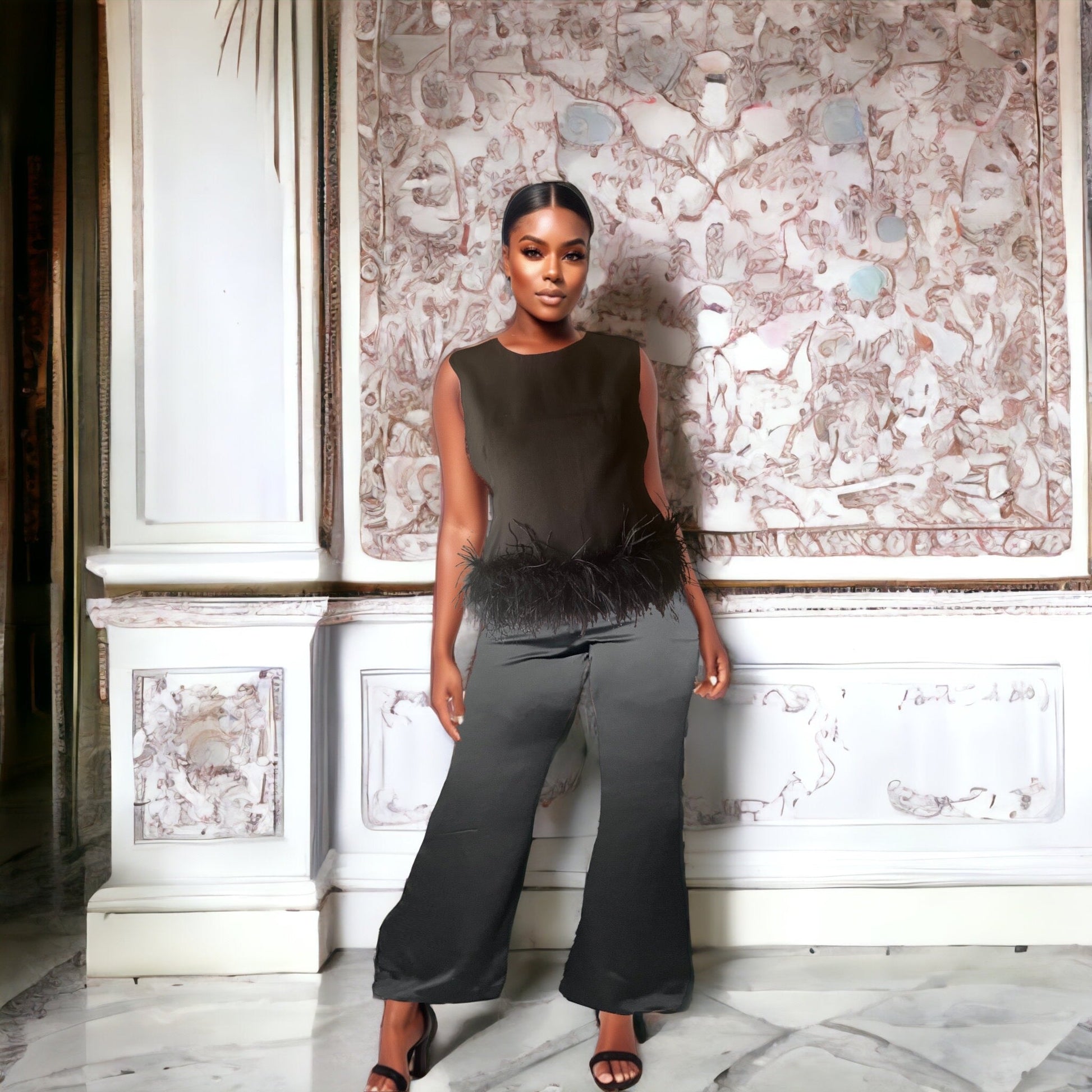 Show your flair for style with this Feather Flair top. Its luxurious feather hem adds a sophisticated touch to your evening look and will make you stand out from the crowd. Made with soft cotton material, this top is sure to be a timeless addition to your wardrobe. This Feather Hem Top adds the perfect touch of holiday style. The heather hem design gives an added dimension to the classic cut and adds instant flair to your cold-weather wardrobe.